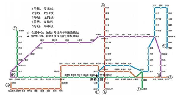 请参考如下地铁路线图(2016年最新)会展中心站是1号线与4号线的换乘站,您可从D出站口出,从会展中心北门进入展馆。或者乘坐1号线或3号线,到购物公园站D出站口出,从会展中心西门进入展馆。