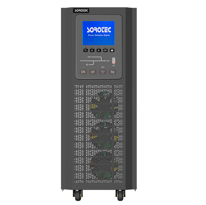 双变换效率高达97%,支持 ECO 并机和智能并机,输出功率因数为 1 (kVA=kW),强大的充电能力,具有独立风道设计将热源与PCB分离,延长使用寿命,远程诊断和预防监控服务,内部结构稳健,适于轻工业应用