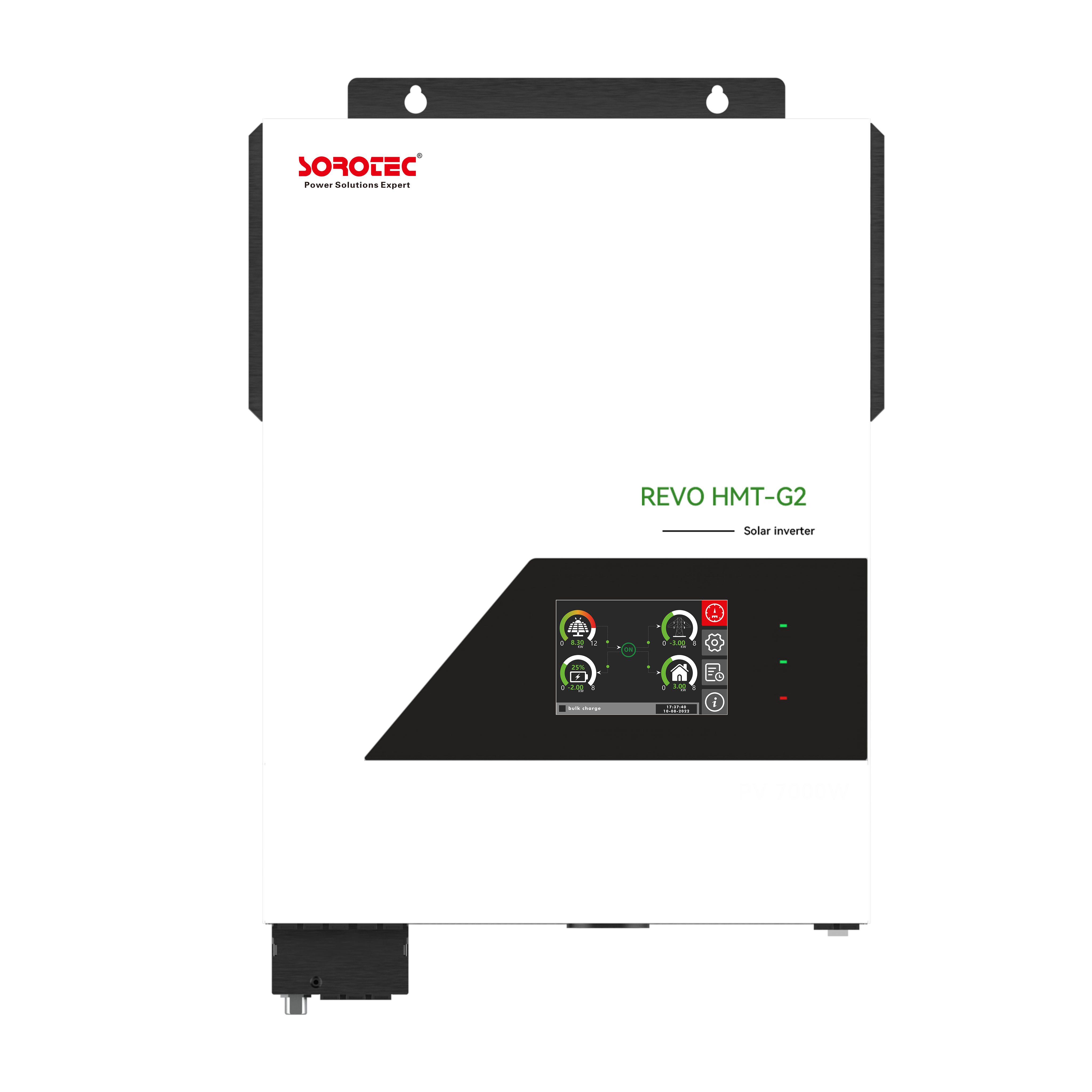 1:CT防逆流功能(可选择) 2:智能管理两个输出负载 3:内置防尘套件 4:彩色触摸屏 5:无电池工作 6:锂电池BMS通信 7:内置Wi-Fi,用于移动监控 8:最多6台机组并联运行